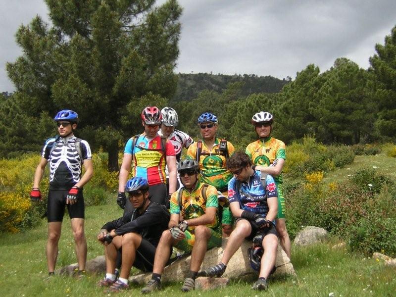 bajada nos toca una nueva ascensión y antes de coronar me encuentro con viejos amigos que le dan mas al enduro que a las rutas pisteras y senderiles como Andresvizi, Victor y Tortugo. Me ha encantado poder saludarles ya que hacia mucho que no coincidiamos. Completo la subida junto a embarrao y toma el mando de la bajada Crato, un gran conocedor de la zona, este seguro que si nacio en el mismo Guadarrama y no como el primer guia, que es sin duda hijo adoptivo.