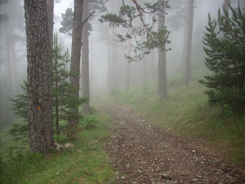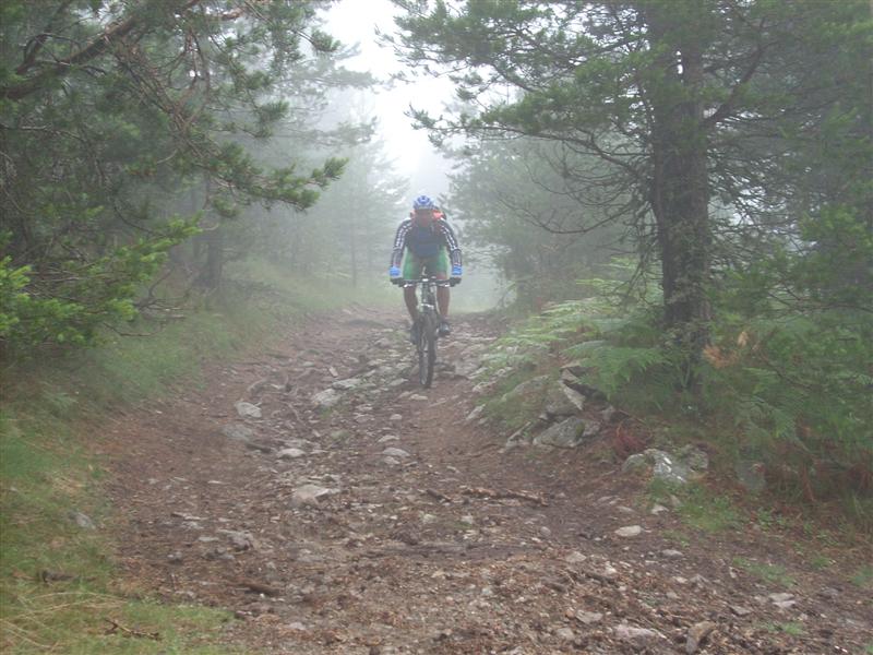 El grupo decide hace la ruta propuesta por lo que nos tiramos hacia el carril del Gallo, esta vez me ha parecido muy sencillo los primeros metros, la verdad es que una maquina ha dejado la zona como una autopista, Manu y alguno mas se despistan y les vemos aparecer empujando la bici entre la niebla, se tiraban por la gallina en lugar de por el gallo, jejejeje.