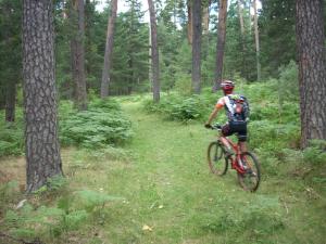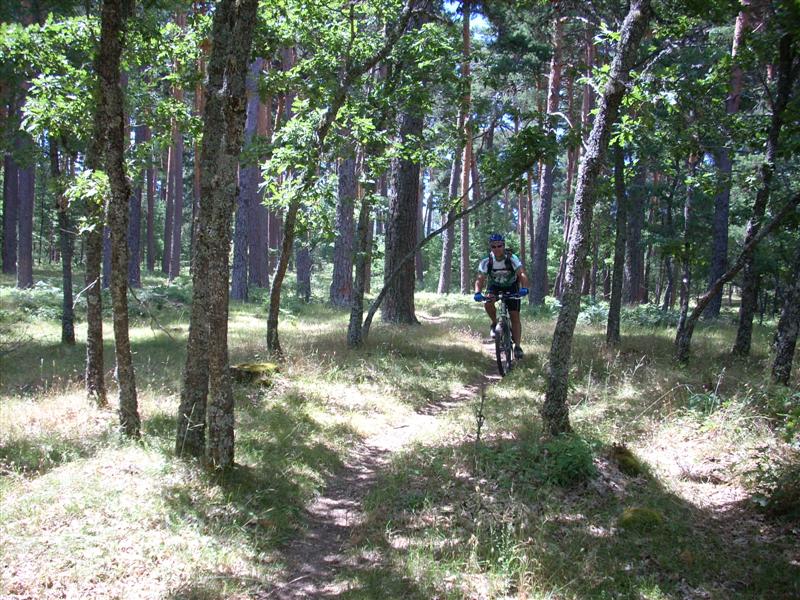 Al coronar el calvario, hay que subir un rampón con escalares, Joaquín se lo sube montada para asombro de algunos Bikers, yo lo subo empujando como el resto de los mortales. En este punto de la ruta le propongo no ir a Morcuera ya que nos podía dar una insolación y enseñarle unos senderos por Valsaín, y como Joaquín es una esponja para esto de los nuevos caminos acepta encantado.