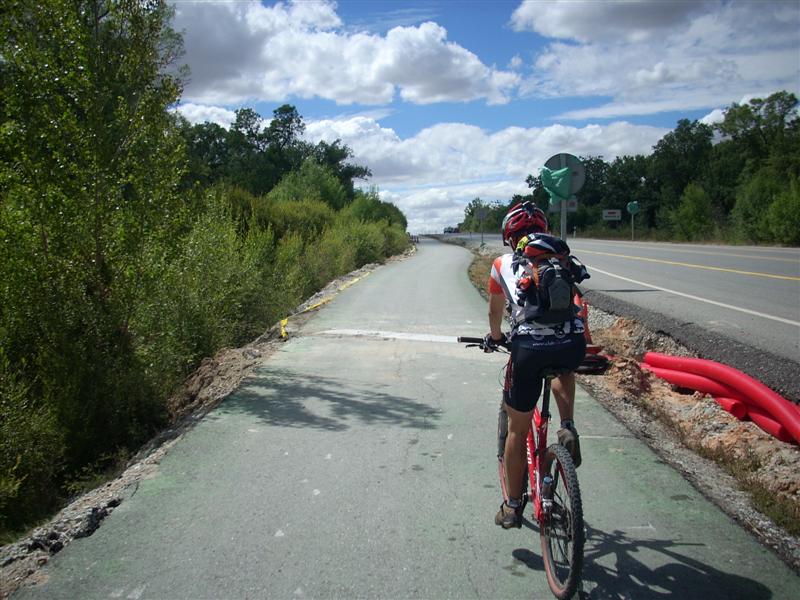 Tras la bajada de la Chorranca nos queda una sucesión de veredas de ensueño, alucinando con la vereda alfombrada, es todo un placer rodar sobre ella. Llegamos a la Granja y Joaquín toma los mandos guiándome de forma magistral hacia el carril bici que nos dejara en la estación de Segovia.