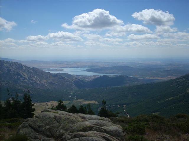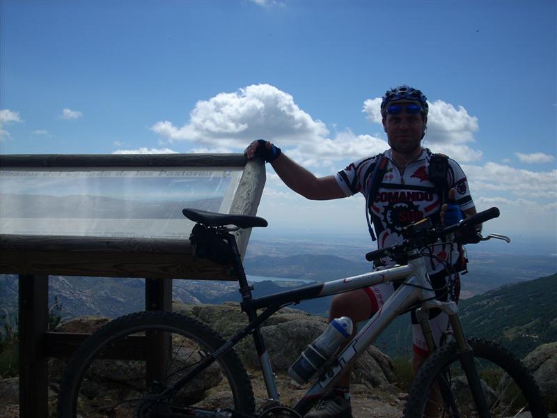 Hacia tiempo tenia visto en los mapas unos senderos que me conducían hacia el interior de la pedriza, y esta vez son mi objetivo. Plato pequeño, primer mandamiento de todo buen explorador y esa sonrisa de quien estrena algo, como me gusta esa sensación de rodar por un sitio nuevo, de encontrar nuevos senderos para mi dibujar en mi cabeza cientos de combinaciones, de rutas divertidas y de rutas imposibles. El sendero trepa por la ladera y tengo que sortear alguna zona rocosa sencilla y mucha arena. Miro hacia abajo y veo la cañada bastante hundida en el suelo, he ganado una altura considerable en muy poco tiempo. Paso una puerta y un sendero infinito se pierde en el horizonte con la mole granítica de la pedriza como decorado, lo recorro y una puerta me deja en un pinar con un sendero que dibuja la subida hacia la pedriza, cruzo la puerta y veo que ambos lados del sendero hay cuatro moles rumiantes tendidas a modo de guardines, estas vaquitas tienen unos cuernos de campeonato, les digo “ paz hermanas y buenos pastos” contraseña para pasar sin problemas ante semejantes guardianes, el sendero me deja en unos metros, muy pocos en una pista. Veo subir a una leche considerable a tres bikers, menos mal que no esta pantano ni jack, sino la jodimos. Subo con calma y disfrutando de unas vistas increíbles, me he dejado el plato pequeño puesto y subo muy cómodo, meto el plato mediano, como si la voz de Jack Randall me dijese “ esto se sube con plato grande mariquita” La verdad es que la pendiente en tramos es muy llevadera.
