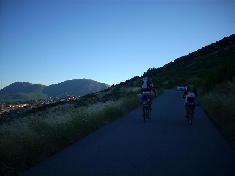 Tras la pista del camping me toca mi calvario, tengo casi 70 kilómetros en las piernas, comienza a atardecer y subo de forma patética las primeras rampas de abantos. Coronar el puerto desde Alcorcón era uno de mis objetivos de esta año, pero no hacia falta lastrarme para intentarlo, ya esta casi anocheciendo, un par de kilómetros más de sufrimiento y comienza una desenfrenada bajada con muy poca luz hacia el camping de pegueritos al cual conseguimos llegar a las 22:00. Montamos las tiendas, nos duchamos y cenamos. Hace frío, pero después del día de calor casi lo agradezco, nos vamos pronto a dormir buscando el calido calor del saco.
