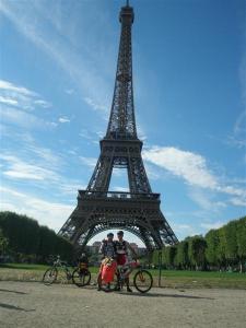 Un carril bici nos conduce por el Sena, pasamos por la zona de Playa y por carril bici hasta la plaza de la república, centro de arte Pompidou, de hay pasamos a Notre dame, el Louvre y los jardines de Marte pera llegar a la plaza de la concordia, cruzamos los campos Eliseo, vimos el arco del triunfo y llegamos a los inválidos y por fin la Torre la Eiffel el gran símbolo para fotografiar de nuestro viaje.