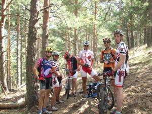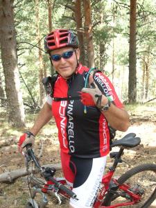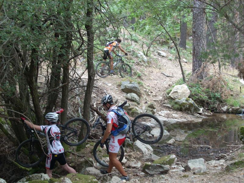 Me quedo en muchas subidas que no completo y primero le echo la culpa al maillot del comando sur, el peso de la gloria de esta prenda se deja notar, jejejeje y luego le culpo a Anguita que tras una breve pausa para tomar una barrita me ha dejado a la mitad el aire del amortiguador, gracias amigo por dejarlo fino.