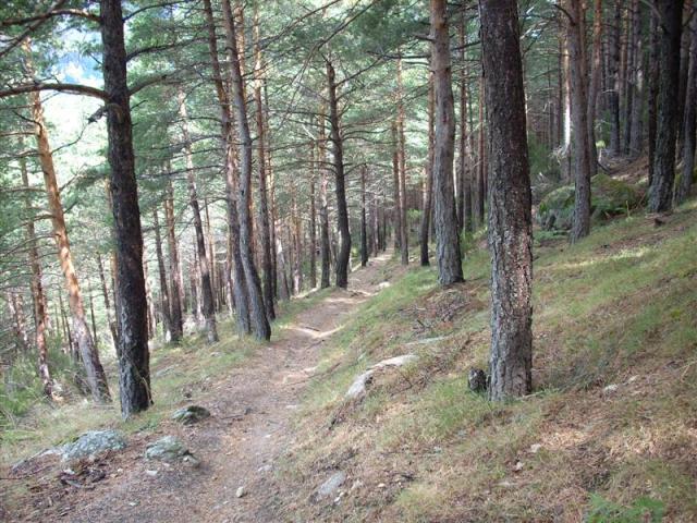 El sendero se coge desde el restaurante el yelmo, pero es inciclable y muy peligroso si ha llovido o están las rocas mojadas, lo hacemos andando hasta que cruzamos un puente, de ahi a canto cochino es una pista. En canto cochino comenzamos a subir o sufrir según se mire rumbo al sendero trialera que baja del collado de los pastores, pero se nos hace tarde y Mon comienza a acusar la falta de ritmo en las subidas, paramos en una fuente y cargamos agua no potable, tenemos que elegir entre