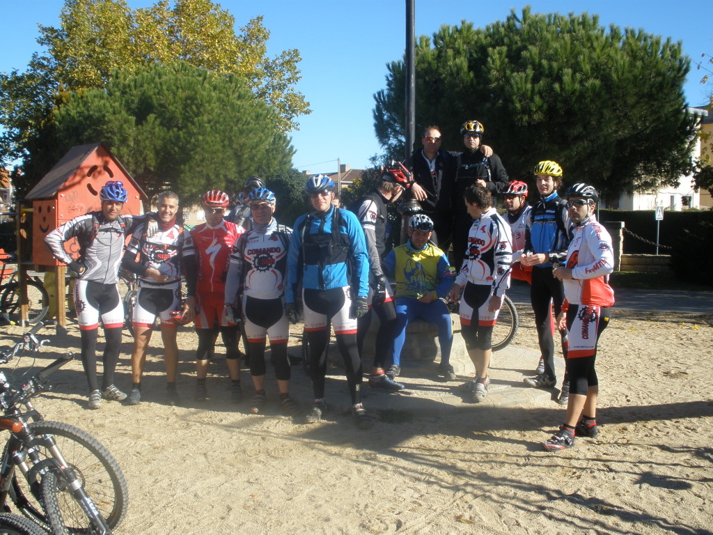 riachuelos que a diferencia de los serranos estos digamos que tienen más sustancias orgánicas, dirigimos nuestras ruedas hacia unas rampas que durante un rato calmaran mi ansia de montaña rodando por un precioso pinar, nos cruzamos con algunos bikers de edad avanzada, uno de ellos rueda con copito de nieve una biker enfundada en un plumas blanco con una capucha de las de pelitos alrededor de cara, parece que le molesta que seamos muchos y nos dice que si no nos hemos dejado a nadie en casa, en fin, se podía juntar con el que casi me doy de frente con el y mira que era grande, jajá jajá como gruñía el condenao.
