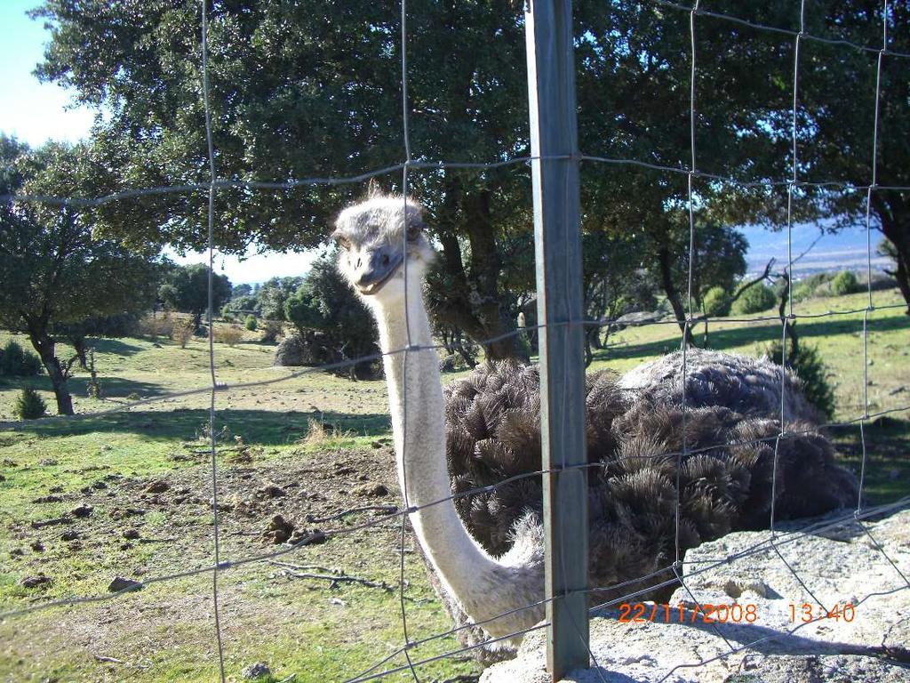 Nos hacemos unas fotos e iniciamos la bajada rápida y divertida hacia la zona de Villalba, tras la bajada unas pequeñas subidas que hacen padecer la dureza de hoyo en las piernas de una rutcimg6826a que es corta pero intensa. Al pasar de nuevo por la finca con los avestruces una se pica con mon bajando le sigue corriendo a su lado, es impresionante, paramos y le hacemos unas fotos. Repetimos el recorrido de primera hora de la mañana en sentido inverso hasta llegar a los coches.