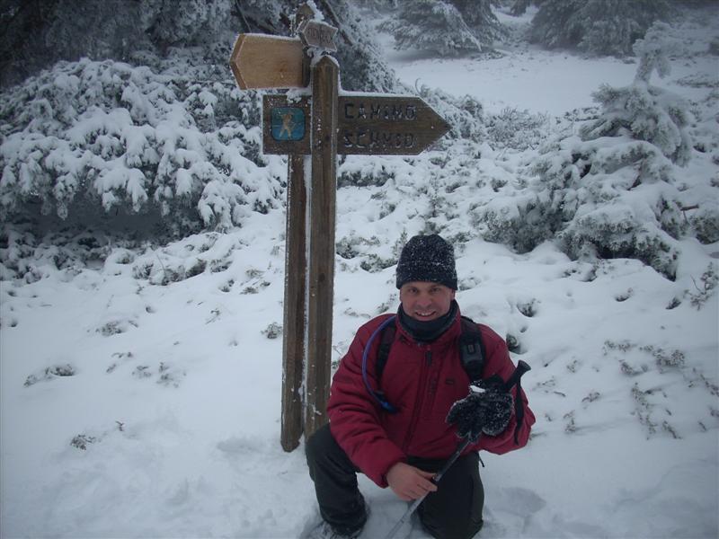 Ascendemos por el PR-7 hasta casi el pico de Majalasna para continuar hasta la fuente de Anton Ruiz de Velasco, en donde Toni llena su cantimplora de agua y el resto nos damos cuenta que tenemos el tubo del Camel congelado por lo que no sale ni gota de agua. A esta altura la cantidad de nieve acumulada en algunas zonas nos hunde hasta la rodilla, nos hacemos unas fotos y dejamos la pradera