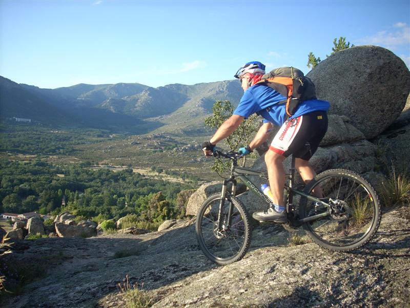 Tenemos pocas ganas de seguir montando y sufrimos para llegar a mi mirador, pero merece la pena, las vistas son de lo mejorcito de la sierra, corre el aire y se esta de lujo. Nos hacemos unos fotos coñas, charlamos un rato y bajamos de nuevo a becerril por un sendero que se esta perdiendo por no usarlo nadie.