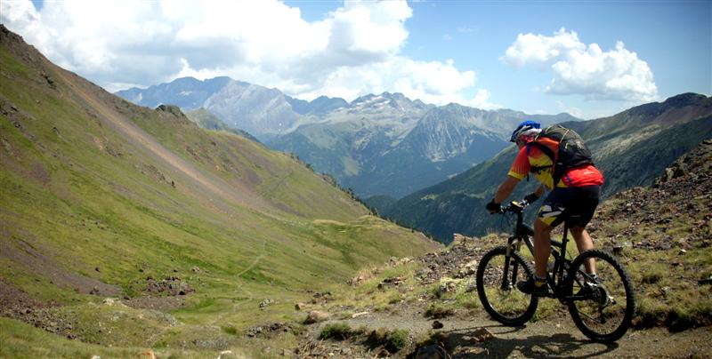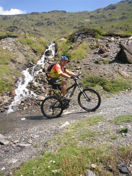 Comemos a orillas del paraíso y retomamos nuestra ruta hacia el refugio, cuando al hacernos unos fotos nos damos cuenta que Robaguilera ha partido su cuadro, vemos con pena como la senda alucinante se pierde por unas montañas que nos piden a gritos rodar por ellas, pero tenemos que dar por concluida nuestra aventura por hoy e idearnos como salir del apuro, ya que tenemos una bici inservible y estamos a más de 2000 metros de altura y a 20 kilómetros del coche.