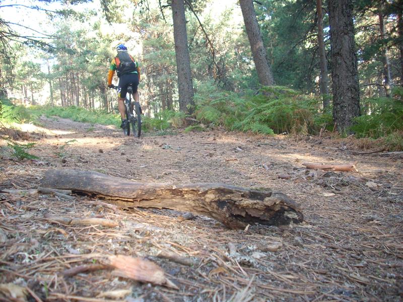 Tras la subida toca un desenfreno bajador, nada complicado por pista que en ocasiones se presenta algo rota pero sencilla y disfrutona. La pista me deja en la pradera del fauno lugar donde se rodo la película y cuando me pongo a buscar la entrada al pozo veo un grupo de bikers, uno de ellos me reconoce como de su especie, es relayer al que hace mucho tiempo que no veo, me doy cuenta que es la kdd del foro que han salido a ver el