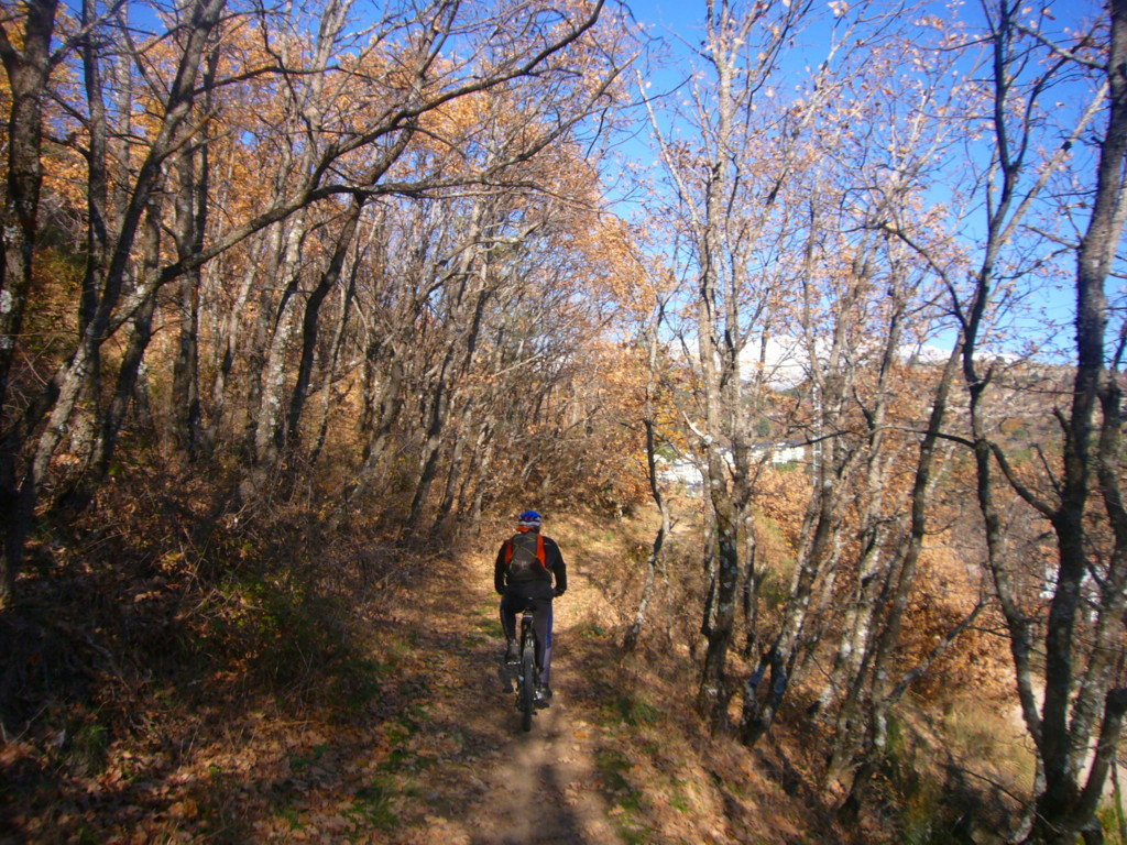 Para no subir por la pestosa cuesta asfaltada de la estación nos marcamos una breve subida para lanzarnos por un sendero divertido que nos dejara en el cruce de las dehesas con la estación, tan solo nos quedara rodar por el pueblo hasta el polideportivo para completar una ruta en al que aún nos queda por rodar el famoso sendero que les tenía prometido, en fin otra vez será y ya van tres intentonas, lo bueno se deja desear.