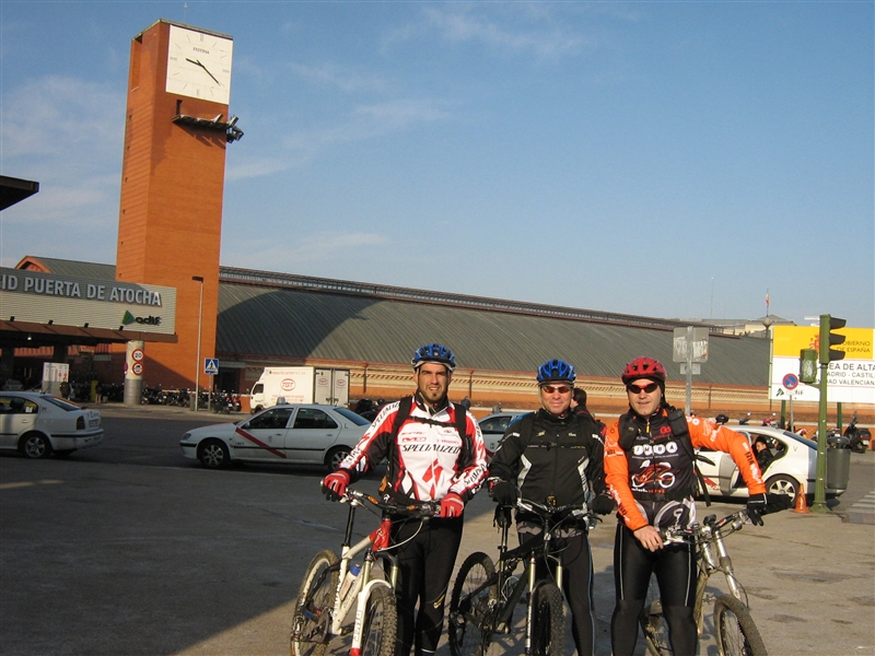Me levanto y según me pongo en pie veo que algo no va bien, me encuentro sin fuerzas en las piernas y con algo de malestar, pero las ganas de aventura pueden a sensaciones mañaneras que pasan con el desayuno o los primeros kilómetros. Como ya tenía todo preparado, no tardo en salir de casa y tomar el tren que me dejara en Atocha, lugar de encuentro para iniciar nuestro viaje. Primero que encuentro con Víctor y después con Despi que llega algo tarde, nos hacemos la foto de salida y emprendemos una nueva aventura hacia tierras castellanas.