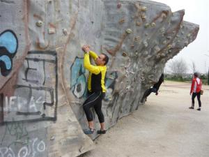 verdad es que soy nuevo en esto y voy dando mis primero pasos. Ahora me ha dado por la escalada a nivel iniciación sin levantar mucho los pies del suelo. Mon me ha traído unos pies de gato que me enfundo para dar mi primera clase de travesía por presas en un rocódromo. Mi maestro yoda me de consejos para colocar los pies, las manos, el cuerpo en general con el fin de poder desplazarme por la pared. Mi primera toma de contacto ha sido buena, me ha gustado , hasta que mis brazos y manos han dicho basta me lo he pasado genial. Estoy lejos muy lejos de ser un hombre araña, más bien por mi cuerpo me asemejo más a una garrapata humana que se aferra a lo que sea por no caer, Mon dice que parte del secreto esta en la distribución de los pesos y eso para mi es una labor compleja ya que tengo demasiado que gestionar, tan solo entre la tripa y el culo mi procesador vital puede llegar a bloquearse.