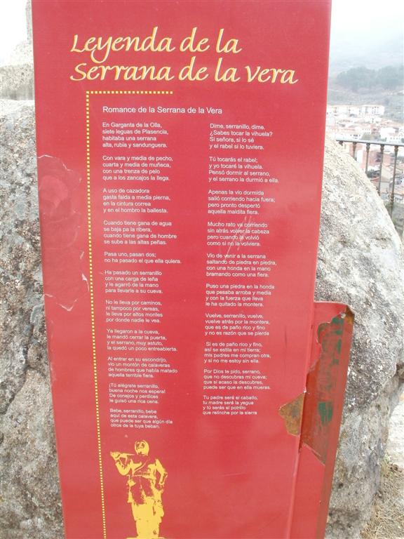 Como tenia cargado el track del camino viejo de Yuste desde G de la Olla, no me cuesta encontrar la senda que me sube por el monte hasta el monasterio, pero antes miro la estatua de una hermosa joven con una leyenda. Romance de la serrana de la Vera y a continuación el romance que en algunos fragmentos dice así.