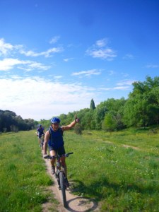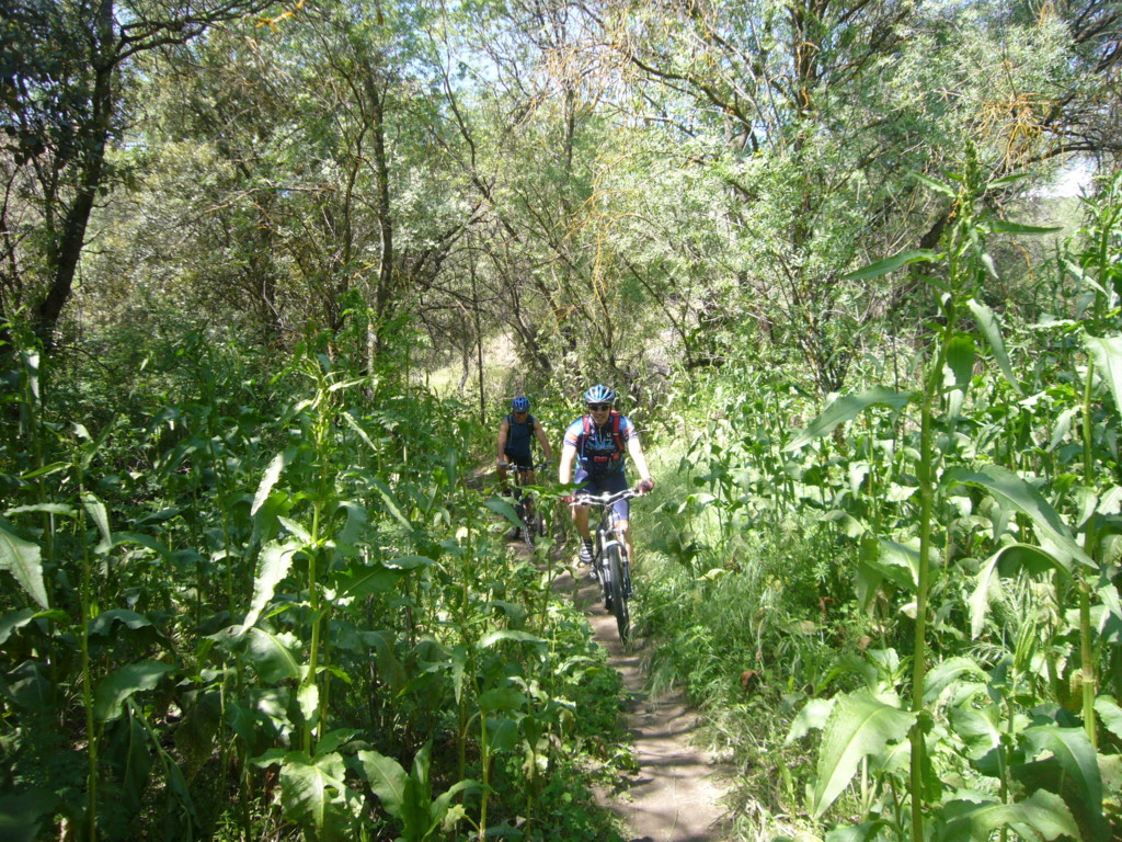 Este tramo de ruta es muy feo y lo tengo que quitar por completo, algo de carril bici, algún sendero, alguna que otra valla que pasar por un lateral y demasiada urbanización hace que el éxtasis alcanzado en los senderos se difumine entre el dolor de culo por el sillín y el agotamiento de unas piernas que no están acostumbradas a tanto kilómetro. Sufrimos algún amago de caída y una caída por enganchón entre Amato y Cristian que se salda en un cónclave en el muslo de Cristian.