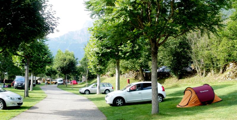 Una guitarra española suena de fondo, sus acordes se funden con los del río Ara a su paso por el camping al que da nombre.