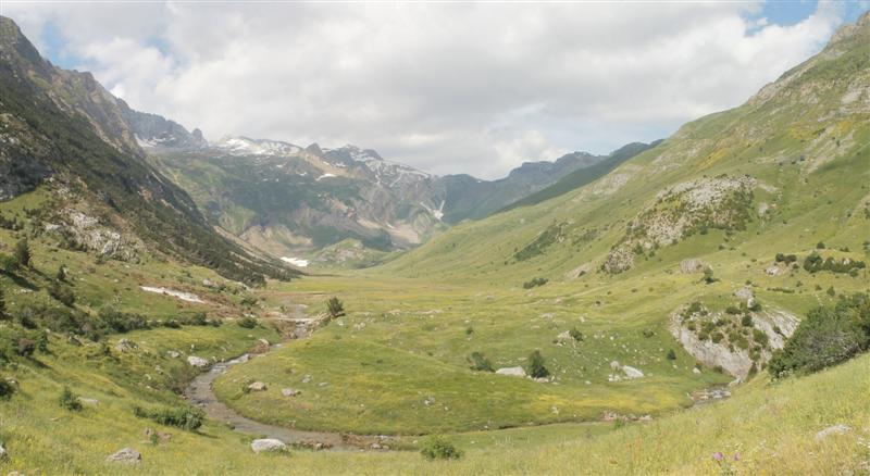 Me doy la vuelta y regreso por donde he subido. En la bajada me encuentro con un matrimonio de franceses, hablan español ya que son descendientes de aragoneses. Me confirman como unir los dos valles pero me piílla muy lejos para dar la vuelta e intentarlo, demasiado lejos y cansado par intentarlo.