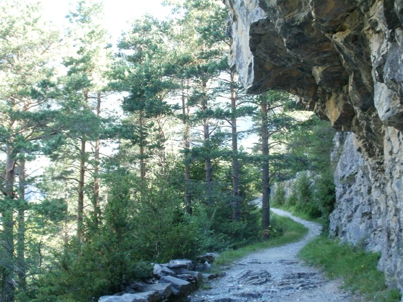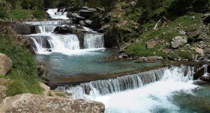 Esta pequeña senda que te sube a la pradera de Ordesa tiene en su interior tres pequeñas joyas que compensan el esfuerzo de renunciar a la comodidad del autobús y son sus tres cascadas señaladas en el recorrido, La de Molineto Preciosa, la cascada de los abetos espectacular y la tamborreta para perder en el sentido y todo mientras ves como pasan los autobuses con gentes de ver y se están perdiendo un prólogo con la misma calidad o más que el mismo valle.