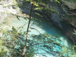 Poco a poco me estoy haciendo un radical en esto de la montaña, por eso quiero saber que es lo que me pierdo subiendo en autobús y no por el sendero. La senda sale a 200 metros de la puerta de tienda y no me lo pienso, cojo agua de la fuente maravillosa que hay a al salida del camping y me pongo a subir por la pista ancha y arreglada con mucha sombra que sume hacia el primer desvío del puente de los Navarros. Una vez en este punto la pista se transforma en senda de montaña, mi cara cambia, no sonrío, me cuesta cerrar la boca y dejar de babear por la belleza del recorrido. Los pasos con piedras que han caído de la pared, árboles a modo de pórticos naturales, el verde intenso cubriendo rocas y troncos, el agua rugiendo ensordecedora a una velocidad endiablada, tomándose pequeños descansos en pequeñas piscinas naturales de un azul intenso que invitan a sumergirse en ellas.