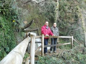 A escasos metros de este salto un puente de madera nos invita a cruzar de orilla y ver un escenario en el que en verano el ayuntamiento monta conciertos nocturnos. Que pueden ser seguidos desde la otra orilla tumbados o sentados en una pradera de césped extraordinaria besados por un río que se toma un descanso en forma de remanso para disfrutar del momento.