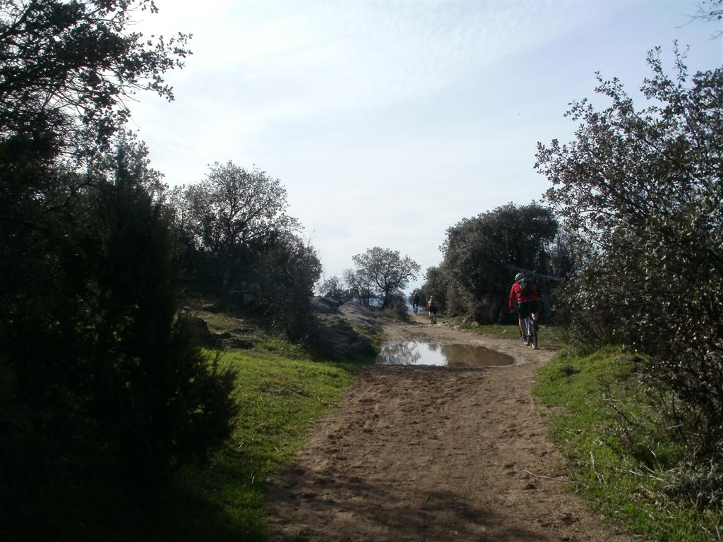 Comenzamos a estar algo cansados y el terreno se hace pesado, estando muy embarrado por algunas sendas por lo que optamos por un breve tramo de carretera hasta dar con una senda divertidísima que nos dejara en Torrelodones en donde sin perder tiempo empalmamos con las sendas que nos dejara en las matas.