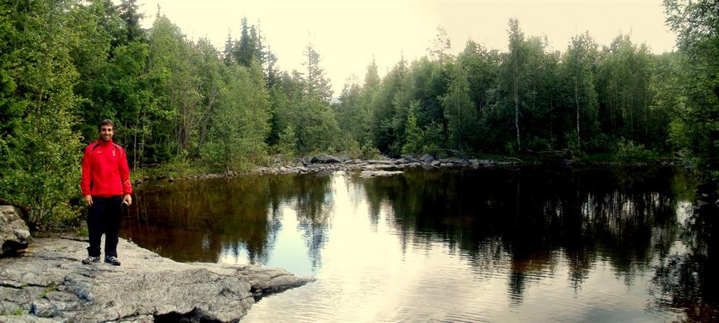 Cuando la naturaleza está tan exuberante las sendas son preciosas ya que están perfectamente marcadas, las rocas son de origen volcánico y el paisaje resulta curioso. Cuando apenas hemos recorrido un kilómetro de ruta nos encontramos un cartel que indica que estamos en el centro del cráter formado por el meteorito, algo que nos decepcionan a Samuel y a mi profundamente ya que no vemos agujero, ni meteorito ni leches, nos han cobrado 10€ por ver la pedriza noruega en versión de lujo, que cabrones estos noruegos.