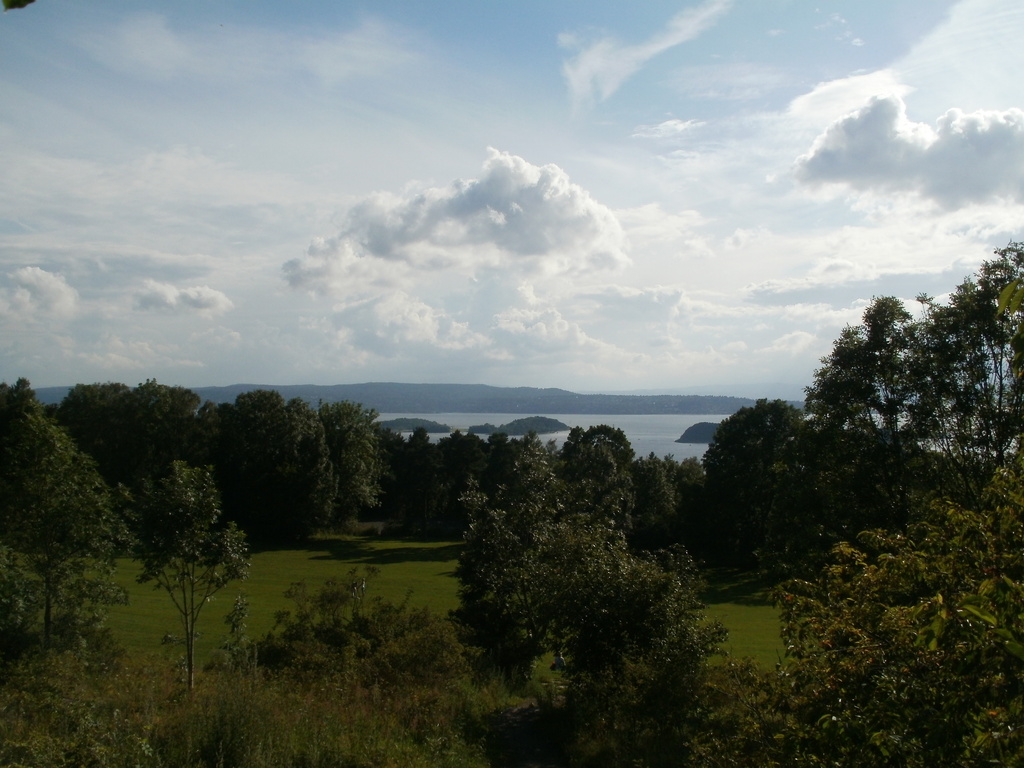 Para cuando llegamos a Oslo el tiempo había dado un vuelco y de lluvia pasamos a un precioso sol que nos permite estar en manga corta, comer y disfrutar de una agradable siesta. Tras dormir un poco Samuel y Jaime se bajan a Oslo para dar una vuelta por la ciudad como más le gusta, en bici. Pero esta vez yo me niego a dar una pedalada más y me quedo en el camping leyendo. Pero la tarde es tan buena y el camping esta rodeado de una especie de casa de campo con unos sendas y unos paisajes preciosos con Oslo de fondo que me animo a dar un largo paseo, es una delicia meterte por esos senderos donde reina casi la oscuridad en un país donde la luz no cesa, el mar de fondo brillando y un verde intenso que te llena de vida, tras casi hora y media regreso al camping coincidiendo casi con mis compañeros.