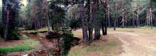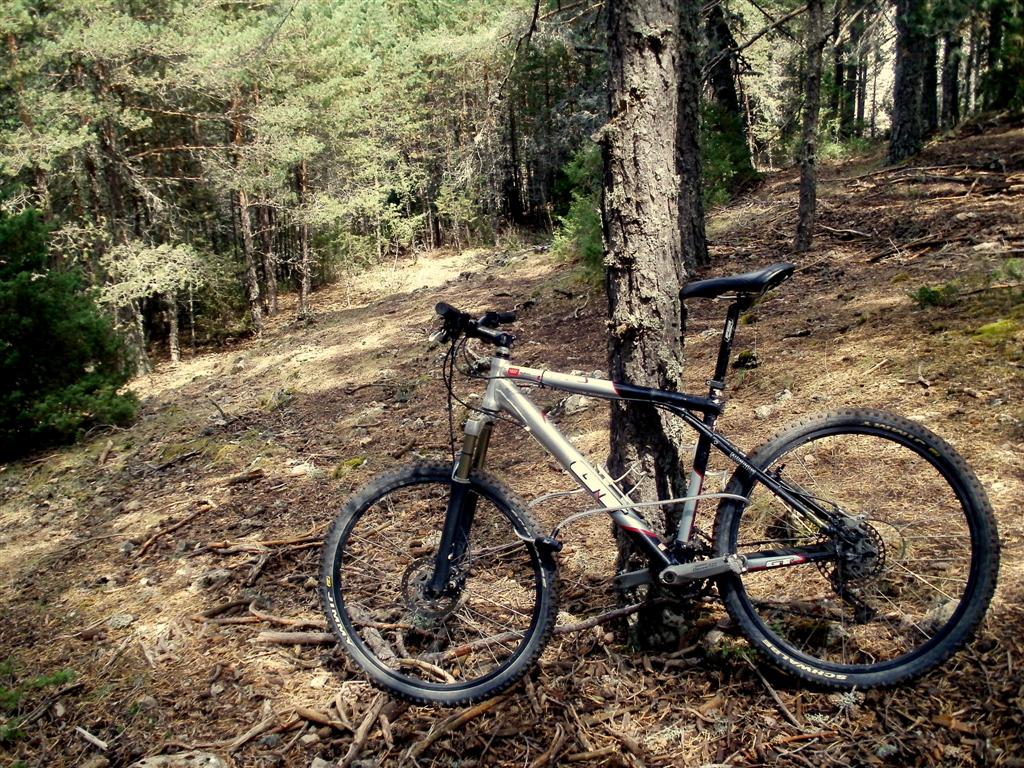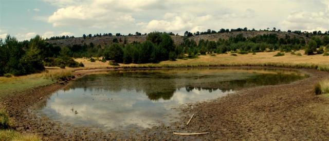 El cielo comienza a dar señales que a la tarde el dios del trueno se va a dar un paseo por el pueblo, decido darme prisa, bueno hago lo que puedo subiendo hacia el camping ya que la laguna esta en lo más alto de la cuesta antes de bajar hasta la tienda cogiendo un pequeño desvío en el que anuncian la ciudad encantada de Orea, pero como yo de estas cosas ya estoy muy escarmentado ni la busco. El recorrido hasta la laguna es tendiendo a subir por pistas con buen paisaje y entretenidas,la Lagunadela Salobrejase encuentra tras una buena bajada trialera pero me han avisado que no merece la pena bajar en bici porque toca subir empujando, como tengo el candado la dejo atada a un árbol y me bajo a ver la famosa laguna que la verdad me dejo un tanto desencantado, pero bueno si he de decir que el lugar en el que se encuentra es una delicia y creo que en primavera puede ser uno de esos sitios mágicos que te dejan sin habla por la explosión de color, aromas y sonidos que lugar de ofrecer.