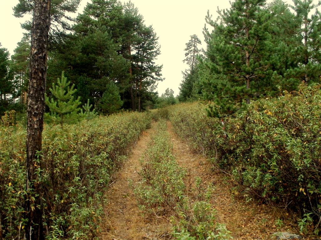 encuentro puestos de tiro y el fin de mi camino. Veo que estoy muy cerca del punto en donde me tenia que dejar la pista ovejera y como una senda casi perdida toma ese rumbo por lo que no me lo pienso y empujo la bicicleta senda arriba, decisión que resulto ser maravillosa ya que primero espante a dos corzos preciosos y cuando estaba apunto de llegar a la pista sentí como vibraba el suelo ante la carrera de una pequeña manada de otros corzos que huían asustados.