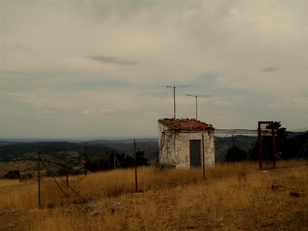 Sigo las indicaciones de me han dado en el camping para llegar por pista hasta la ermita de san Cristóbal, pero a mitad de la subida me encuentro con un rebaño inmenso de ovejas que baja por ella, como tengo muy mala experiencia con estos bichos, bueno más bien con los perros que las pastorean decido darme la vuelta y buscar por con el GPS un ruta alternativa que encuentro y pienso me deja en el mismo lugar que la pista que me habían indicado pero al llegar al punto en el que según el mapa partía una senda me encuentro que esta no existe y en su lugar varias rodadas de vehículos que se han abierto camino por entre un matorral muy denso. Como puedo rodar con facilidad me resulta hasta divertido continuo por las rodadas hasta una explanada en donde me
