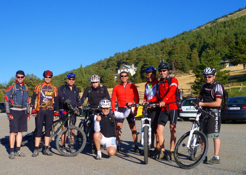 Si además completamos la kdd con Cristian, Raúl y Amato el reencuentro no podía tener mejor cartel para una buena mañana de tríaleras y subiditas de infarto. Salimos del puerto de cotos y pronto nos metemos en faena, esta es de las rutas raras, se empieza bajando para terminar subiendo, vamos lo que todo ciclista de montaña odiamos pero esta ruta es así. La ventaja que desde el comienzo estas rodando por unas sendas maravillosas y tras unas subidas de esas para calentar se presentan las primeras trialeras, muy secas, muy pendientes, muy rotas pero todo una orgía bajadora si lo te gustan las emociones fuertes. Claro que si lo tuyo no es la bajada técnica los próximos kilómetros te van a resultar un infierno eterno cargando con la bici. Pero todo tiene un fin y tras la trialera que te deja en el río y tienes que portar la bici hasta alcanzar la pista, esta nos conducirá hasta el paular en un descenso vertiginoso alternando pista en buen estado con tramos un tanto más empedrolados pero nada del otro mundo ni como para bajarse de la bici, que para eso somos bikers aguerridos.