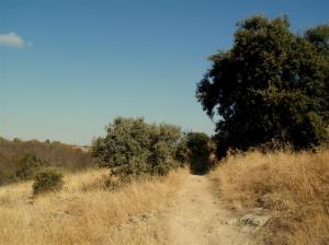 esta ocasión decido no cruzar Villanueva del Pardillo y tomar el camino de los Toconales, pista en muy buen estado que nos conducirá hasta la escuela de vuelo en donde vemos como un buen número de pilotos de globos aerostatitos están reunidos seguramente preparando sus vuelos. Nosotros tomamos el camino de la vereda colada a la venta de San Antonio, que es una carretera venida a menos ya prácticamente pista con poco desnivel que se deja subir sin tener que sufrir los rampones de la urbanización las cuestas o el cerro del Madronal que también tiene su encanto sufridor. Tras las pistas una vez que nos acercamos a Colmenarejo tampoco vamos a pasar por su núcleo urbano y nos libramos de sus cuestas pestosas, en su lugar divertidas sendas en ligera bajada que nos dejaran de nuevo en pistas que poco a poco van ganando altura hasta llegar a la cañada Real del Camino de Madrid en donde esta El Mirador y la ermita de la virgen de la Soledad en donde descansamos y quedo con Jaime para encontrarnos en el camino.