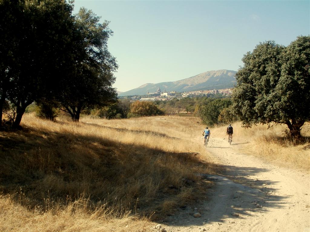Tras los senderos Borja comienza a sentir el cansancio en la piernas, el arrastras unos cuantos kilómetros más y casi una hora más de pedaleo al ir en bici de casa al lugar de encuentro por lo que nos tomamos con calma charlando las pistas que nos dejaran en el camino de las puertas del Escorial. Al ir llegando a nuestro destino nos encontramos con embarrao, vato y un colega.