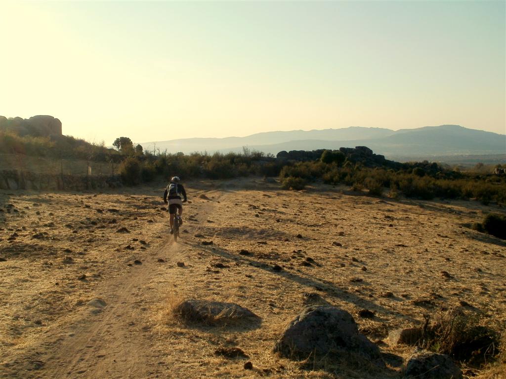 El día anterior había salido con Borja para hacer la casa de campo el Escorial y quería una ruta tranquila sin mucho desnivel pero que fuese divertida, quería recuperar algo de esas salidas apasionantes y divertidas que hacíamos los viernes cuando tenía casa en Becerril y nos dedicábamos a disfrutar de los mejores tramos de cada recorrido. Como JJ ahora vive en un lugar privilegiado decido comenzar la ruta con los senderos del camino de santiago que van a dar a Mataelpino en sentido contrario al caminar peregrino. El comienzo es un senda trialera en bajada muy divertida para terminar rodando entre jaras de medio metro por un sendero apasionante, en constante subida llevadera que en días frescos te quita la tontería del frío antes de llegar a Mataelpino. La ruta continua en bajada, disfrutando de la velocidad por la pista que da a la pedriza hasta tomar el primer desvío a la derecha para subir una rampita graciosa y enlazar con el camino que nos dejará en el Berrocal, en donde buscamos la pista que con suerte nos dejara en Cerceda y que encontramos enlazando si problemas el camino hasta que nos pasamos el desvío por reírnos de un señor que bajaba en su bici haciendo 88 con las ruedas, no se ni como podía mantener la línea recta.