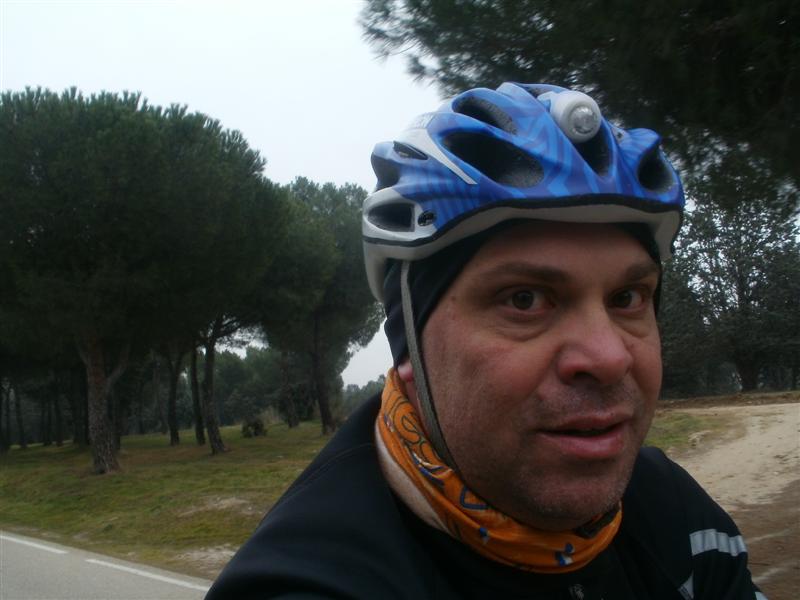 La carretera esta desierta, es pronto, domingo y con frío intenso, solo los tontos se ponen un despertador para salir a dar pedales y yo soy de los más tontos. En los pies estreno unos calcetines de membrana del decatlón que me la sensación hacen el efecto inverso en lugar de mantener el calor me están enfriando el pie más aún y comienzo a tener las manos agarrotadas ya que los guantes que he cogido no son los de forro polar y les cuesta mucho calentarse, ya me lo decía José que en la de carretera se pasa mucho más frío que con la de montaña. Para poder salir de Alcorcón sin jugar demasiado a la ruleta rusa con los coches salgo por Leganés hasta alcanzar el centro comercial M-40 y desde allí por campamento enlazo con el carril bici sin demasiada complicación ni problemas, tan solo la mega rotonda de Aluche que si algo peligrosilla, pero una vez superada ruedo por el carril bici del anillo verde, mi cuerpo en términos generales podíamos decir que logrado estar templado menos los pies que comienzan a dolerme por el frío- Siempre que bajo a la casa de campo lo que se me atraganta un poco es la subida hasta alcanzar el puente que te da acceso a la misma, pienso que con la choni lo mismo tenemos que meter el pequeño, pero me equivoco de pleno, mi fiel compañera apenas acusa la subida y con un subir un par de piñones en plato mediano lo subo con una comodidad insultante, una gran sonrisa se nos dibuja a los dos en la cara y puedo sentir el susurro de la choni con un, ves como no era para tanto.