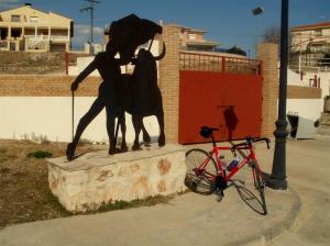El premio de la bajada del día se lo doy al tramo entre Renera y Aranzueque, toda una delicia con curvas increíbles de tumbarte, sufrir y disfrutar al mismo tiempo para un novato como yo. Con52 kmen las piernas comienza la subida de nuevo al pozo, a mi comienzan a pesarme los kilómetros en las piernas y la felicidad de la gran ruta que estoy rodando, siento que un coche rueda despacio tras de mi en el puertecito, le doy paso en la recta sin mirar y me adelanta un choche de la guardia civil con una impresionante agente de pelo negro rizado que me da las gracias manando de una sonrisa maravillosa, “gracias a ti” la grito entre jadeos a la par que comienzo a bajar piñones de la choni para terminar de coronar la subida y tras el llaneo de10 kmdejarme caer hasta la fuente de la alegría en la que repongo agua para el viaje de vuelta a casa y tras cruzar chiloeches llegar a mi coche, al parque repleto de viejecillos en busca del sol de