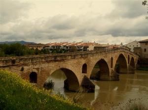 Para evitar caídas por el barro esa vez optamos por la carretera y me paso Eunate de largo, imperdonable, pero el camino es así hay días en los que uno tiene el sentido de la orientación algo desorientado. En Puente dela Reiname despido de Gaby continuando mi camino en solitario salvando las aguas del río Arga por el puente de los seis arcos.