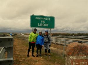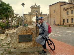 La lluvia por momentos hace acto de presencia, por el camino me vuelvo a encontrar a la pareja con la que coincidí en el alto de Mostelares, al final va resultar que el camino es un pañuelo. Dejamos atrás la provincia de Palencia para iniciar nuestras primeras pedaladas peregrinas en la provincia de León. Sahagún con su espectacular puerta nos regala una de las típicas fotos