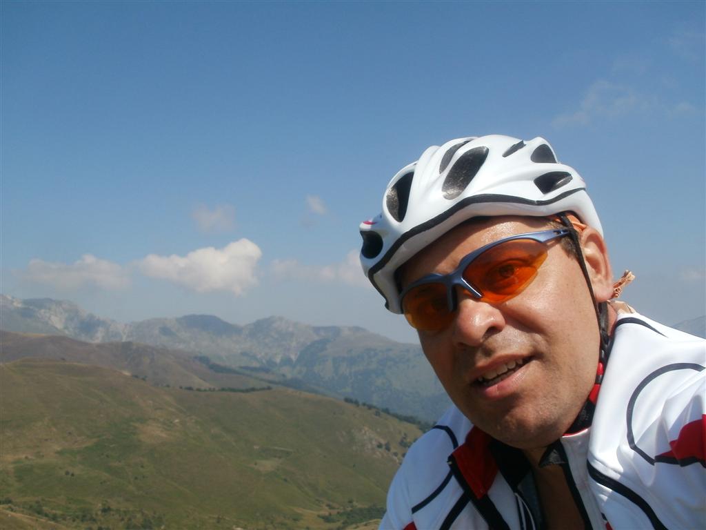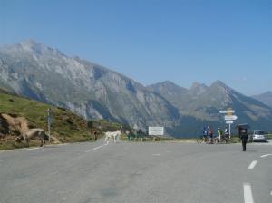 A un kilómetro del puerto veo como un grupo de ciclistas franceses me han puesto como objetivo y se van dejando la piel por alcanzarme, son como lobos hambrientos en busca de una presa herida, pero decido dar lo poco que me queda y hacerles sufrir un poco más, aprovecho uno de los giros en los que no me ven para bajar piñones y pedalear de pie, sentándome cuando me tienen a la vista, noto que algo no les cuadra, se han dado cuenta que voy más rápido y un par de ellos se descuelgan, tres continúan tras mi culito y a cien metros de alcanzar la línea de fin de puerto corono con apenas unos metrosde ventaja del mas fuerte de ellos que me grita un good, good riéndose porque sabia que no me había dejado pasar. Con el corazón en la garganta asomándose para ver el paisaje me cambio de nuevo, dejo a la Choni descansar en su soporte y me doy una vuelta para disfrutar de las enormes bicicletas que coronan la cima y unas vistas increíbles a una estación de esquí.