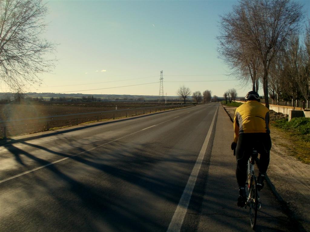 Retomamos la ruta, siento las piernas cansadas de la ruta de mi cumpleaños y el entreno del jueves con Antonio que se me fue un poco la mano con el tiempo y los kilómetros para ser una nocturna y es que la singueso me pierde. El Sol brilla pero gana el abrazo gélido del viento al beso calido del astro rey. Dejamos atrás ciempocuelos y el desvío a Aranjuez para otra ocasión que si bien no me esta gustando mucho la zona he de reconocer que para entrenar no esta nada mal y puedo llegar hasta aquí desde casa, esa será una de mis próximas salidas. El viento hasta ahora, a ratos juguetón a ratos amigo no nos ha molestado en exceso y progresamos a ritmos decentes para dos bikers de tipín generoso como nosotros.