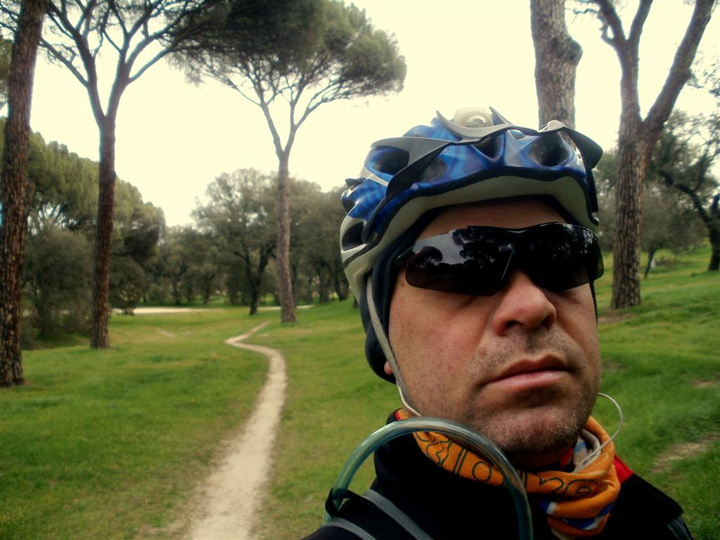 La casa de campo en esta época del año esta preciosa, si fuera una mujer le diría que la veo más delgada, pero bueno es verdad. El verde intenso del suelo delimita los senderos dibujando su trazada sobre el terreno como si estuviesen dibujados sobre el. Como ya he dicho muchas veces soy un inútil total en la CDC y me pierdo con tan solo salo salir del carril bici. Tengo cargado desde hace tiempo un track con senderos en el gps que intento seguir pero es una locura ya que son bucles y no hay forma de seguirlos al no tener claro el sentido si son de subida o de bajada. El cuello cada vez me molesta más y el viento comienza a ser un buen incordio por lo que decido meterme por uno que tire hacia arriba y ya llegare a algún sitio.