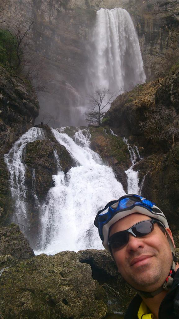 Comenzamos subiendo para ir bajando el desayuno y vamos poniendo a punto las piernas para afrontar la segunda jornada de nuestro viaje. El nacimiento del río mundo esta muy cerca y como es pronto apenas vemos gente en el entorno por lo que podemos rodar tranquilamente disfrutando de la paz del recorrido, el agua anunciando que es la protagonista y la gran cascada que esta vez si puedo disfrutarla en todo su esplendor bien cargadita de agua.