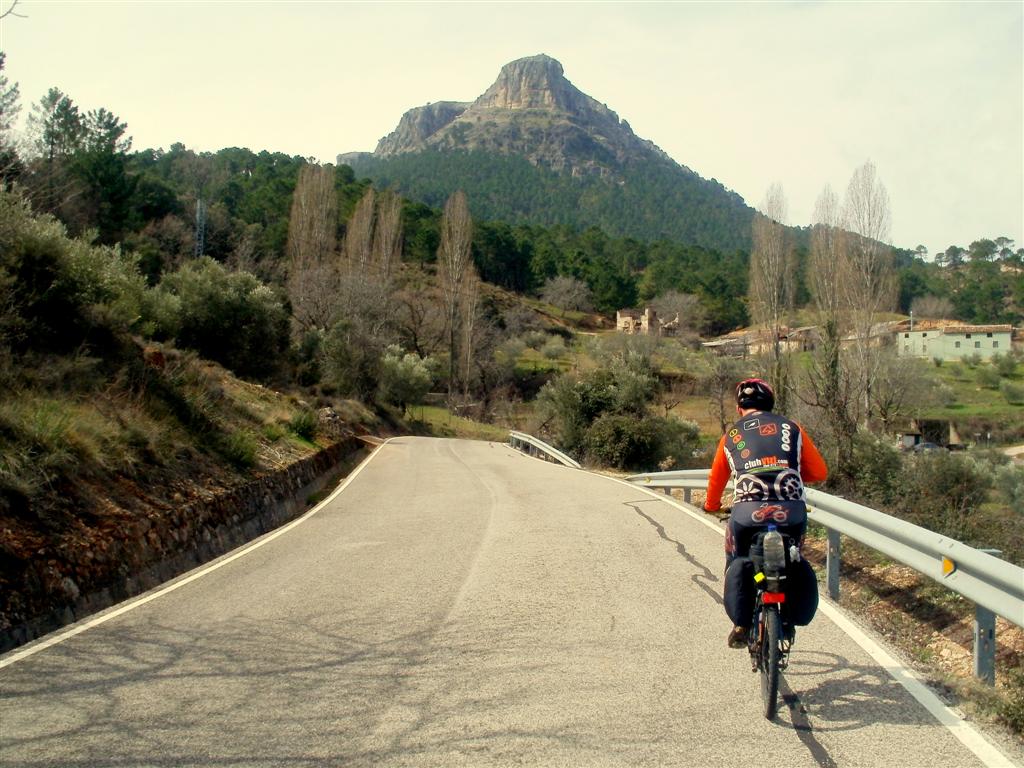 Continuamos ascendiendo por las faldas del alto del morrón hasta meternos una buena bajada por carretera que nos dejará en Villarrodrigo pueblo que nos da bien de comer y en el que sufrimos el curioso fenómeno atmosférico en el que sale Jorge y me dice, esta lloviendo, salgo yo, me alejo dos metros de la puerta del bar y le digo, aquí no. Así que nos movemos dos metros para terminar de prepararnos y no nos mojamos.