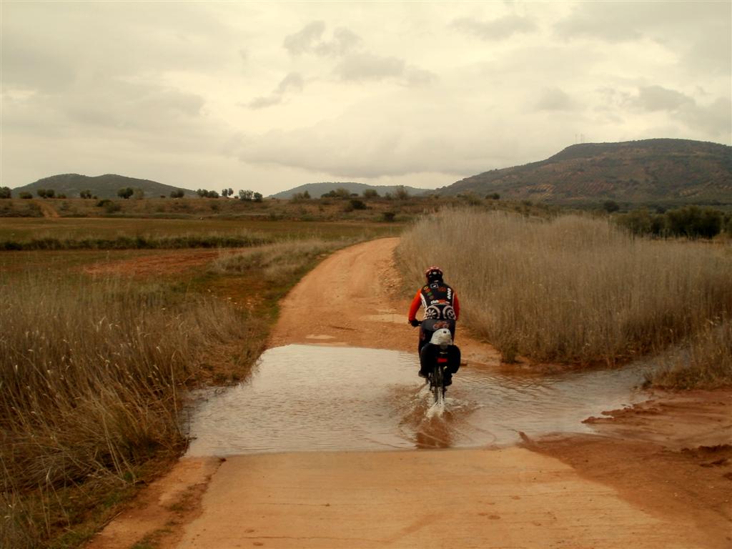 Mientras rodamos por las perfectas pistas de la ruta quijotesca vemos como la compre de la montaña por donde tendríamos que haber ido esta muy cubierta con niebla por lo que nos consolamos con haber tomado la decisión correcta. Pero apenas a falta de tres kilómetros para llegar al hostal nos cae un chaparrón de los buenos llegando caladitos al hostal, bueno ha sido poco para la previsión apoteósica que anunciaban por la mañana.