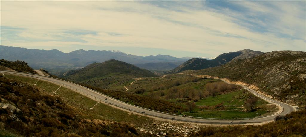 Herradón para coronar el alto del Boquerón 1.315 metros de vistas increíbles y subida entretenida con el puerto del mediano al fondo como reto para cuando las piernas tengan más kilómetros. Me ha encantado este puerto que en apenas dos semanas lo he bajado con la de MTB, sendero espectacular y lo he subido con la flaca, tráfico escaso y subida increíblemente bonita. Tras coronar el puerto, rápida bajada hacia Ávila sin mucha complicación salvo el sortear a un mastín escuálido que en mitad de la carretera se quedo sin saber a cual de los cuatro comerse y quitando a Uke que esta en forma el resto tenemos bien de carne para rebañar los huesitos.