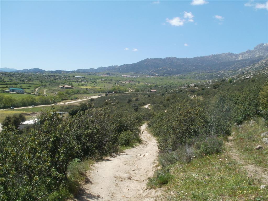 JJ no es muy de bajar por sendas y trialeras, me da la opción que baje yo por ellas pero prefiero completar mi calvario fustigándome a base de pedaladas por la aburrida pista. En la bajada hacia la pista del camino de Matalpino cometo un error de navegación y me salgo por una senda con muy pinta 6 curvas antes de la que tenia que tomar y terminamos por una trialera divertidísima pero sin salida en la zona conocida como el Aculadero, jejeje, frente a la casa de una finca privada y rodeado de vallas por los que retrocedemos unos metros y alcanzamos de nuevo la pista para esta vez en unos metros si pillar la senda correcta, lo digo para que estéis atentos si vais a seguir el track, seguir toda la pista hasta encontrarse de nuevo con el track.