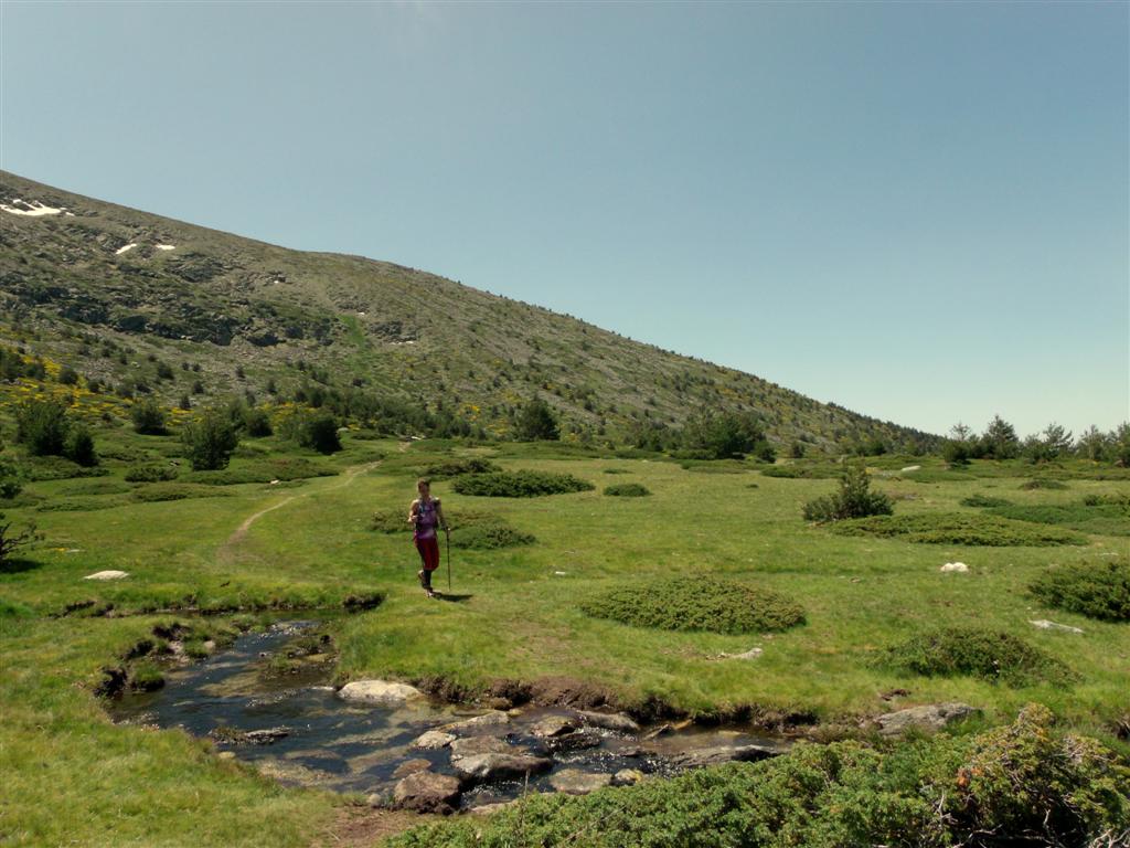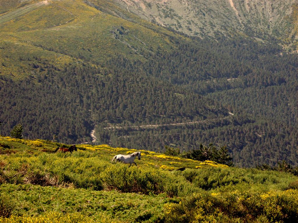 trincheras y fotografiar la zona, es uno de los muchos apasionados de la guerra civil que disfrutan con estos restos. Yo prefiero disfrutar de un trago de agua helada del la fuente de los pájaros y disfrutar de unas vistas únicas de nuestra sierra madrileña. Tras el descanso en la fuente continuo subiendo hacia la cumbre cuando siento temblar el suelo, una manada de caballos bajan al trote de la cumbre, con sus crines al viento, me siento feliz, me siento libre y sonrío al recordar una frase que había leído hace muy poco de Adré Breton El hombre que no puede visualizar un caballo al galope sobre un tomate es un idiota.