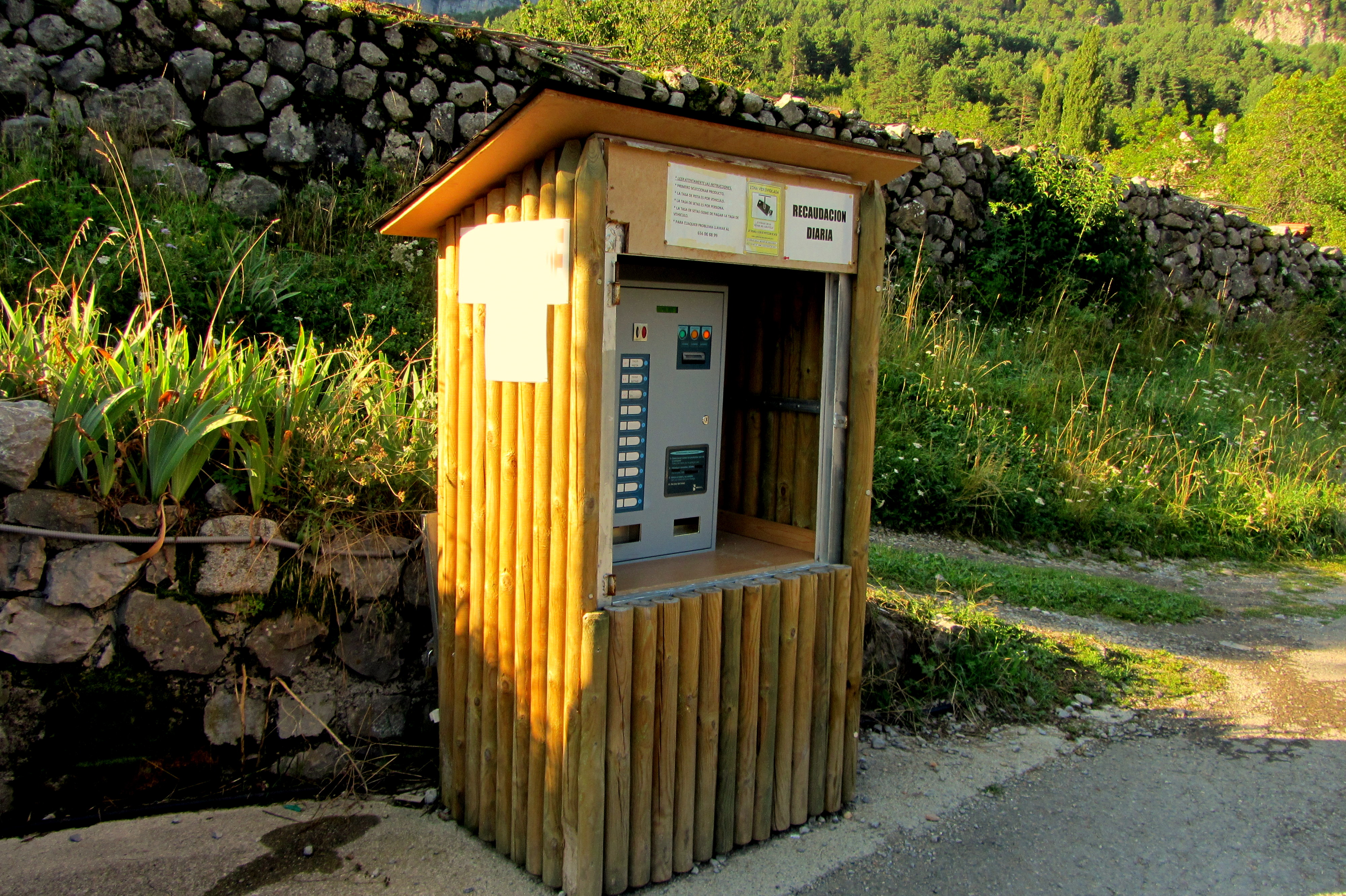 Justo antes de comenzar a subir hacia el Ibón hay un aparcamiento en el que se puede estacionar y desde este punto comenzar a ascender por la pista. Lo primero que te encuentras nada mas iniciar el ascenso es un dispensador de ticket para abonar la tasa si quieres acceder en coche o ir a recolectar setas. Llevamos dos días montando seguidos y el primero fue duro. Las piernas se hacen la remolonas pero hay subir, en escapadas tan cortas no puedes perder un día por algo tan insignificante como el cansancio.