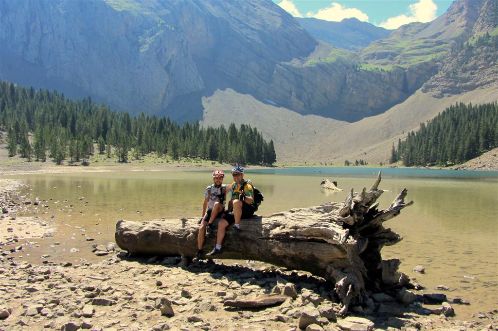 El agua es cristalina, el gris pétreo de la roca desca sobre el verde que apenas cubre la piel desnuda de la montaña que en contraste con un azul intenso del cielo hacen que el paisaje te deje sin aliento, bueno eso y la subida. Nos regalamos una minutos de relax en la orilla, sabemos que en unas horas volveremos a nuestra rutina, a una pantalla de ordenador que tendrá un fondo como en el que estas y soñaras que algún día podrás sentir estar en un lugar así. Nosotros lo hemos conseguido y podemos respirarlo, tocarlo, sentirlo con la ligera brisa que desde la cumbre te hace sentir que la montaña esta viva. Nos da pena dejar este lugar, y nos da pena que cueste tan poco acceder a el con un vehículo ya que se merece un premio más grande, algo más de esfuerzo para quien quiera disfrutar de la montaña en mayúsculas como es este Ibón.